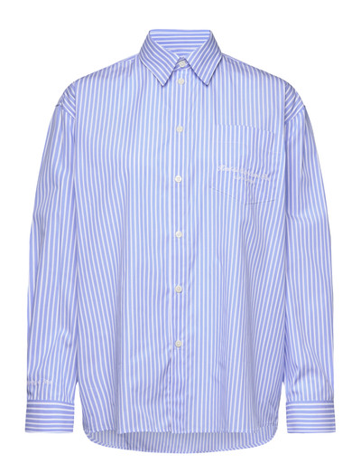 Crafted for a relaxed fit, this striped shirt features a button-down front and a chest pocket, blending classic tailoring with a casual aesthetic. The oversized silhouette offers a comfortable and stylish option for everyday wear.