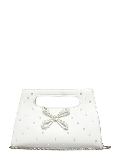 Featuring a delicate chain strap, this clutch is adorned with faux pearl embellishments. It also has a top handle for versatile carrying options.