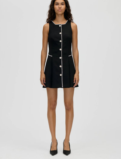 Structured Crepe, Sleeveless Button-Up Mini Dress - Short Dresses