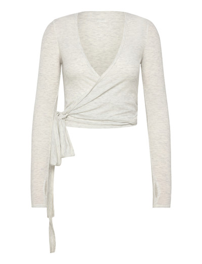 The Soft Rib Wrap Long Sleeve in light grey brings a soft, elegant layer to your routine with its ribbed texture and flattering wrap-tie silhouette. Cut in a slim, slightly cropped fit, it feels gentle on the skin, stays breathable, and dries quickly for effortless comfort.