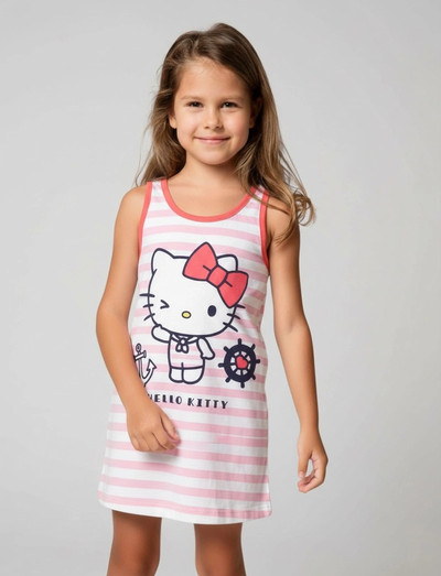 Featuring a playful print, this sleeveless dress is perfect for warm-weather adventures. The design incorporates thin stripes and a charming character graphic.
