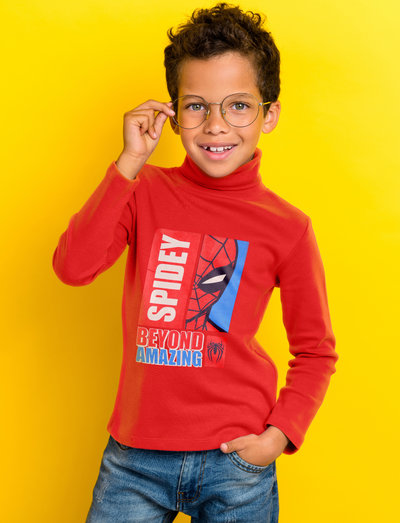 This Spider-man T-shirt is perfect for any young fan. It features a cool design with Spider-man's face and the words "Beyond Amazing." The T-shirt is made from a comfortable blend of recycled cotton and recycled polyester, making it a great choice for everyday wear.