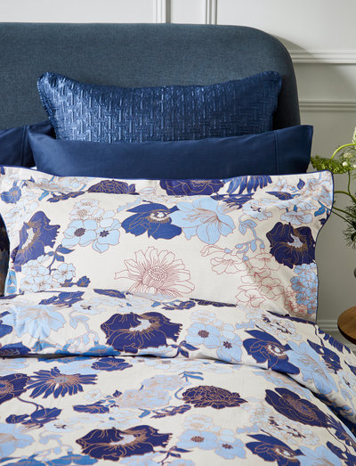 Add depth to any bedroom with an upbeat floral design in an array of blue, beige, gold and navy flowers, further enhanced with coordinating accessories.