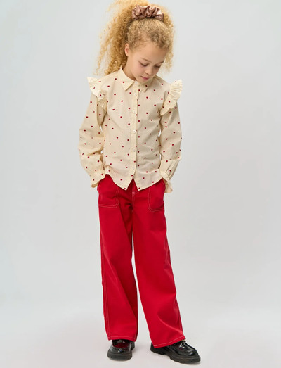 Denne skjorte fra THE NEW er designet i en regular fit og giver et klassisk, afslappet look. Den har lange ærmer og et sødt hjerte AOP (all-over print), der tilføjer et legende touch til din garderobe. Skjorten har en flipkrave, der giver den et stilfuldt twist, og de fine flæser på skuldrene skaber en feminin detalje, der skiller sig ud. Perfekt til både hverdag og festlige anledninger, hvor du ønsker at udstråle både komfort og charme.- Regular fit.- Long sleeves.- Heart AOP. - Flip collar.- Frills on shoulders.