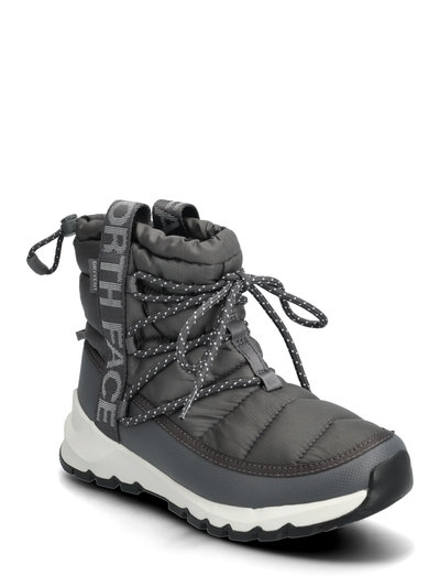 The lightweight, waterproof Women’s ThermoBall™ Lace Up WP is a secure-fitting winter boot with a durable recycled ripstop upper and toasty ThermoBall™ Eco insulation. / UPPER/ Water-repellent, recycled P.E.T. ripstop upper / Waterproof DryVent™ membrane / Non-PFC durable water-repellent (non-PFC DWR) finish for added water repellency / ThermoBall™ Eco 100% recycled polyester insulation helps keep feet warm even when wet / TNF™-branded webbing pull loops on both sides for easy pull-on / Collar bungee is adjustable to help prevent snow from getting in / Synthetic mudguard helps keep out the elements / Oso fleece collar lining for comfort / Comfortable OrthoLite® Eco LT™ footbed made with 5% recycled rubber content and 8% plant-derived bio-oil instead of petroleum per ASTM-D6866-16 / SOLE UNIT/ Rubber outsole for increased traction;;Approx Weight/ ½ pair: 360 g - pair: 720 g ||