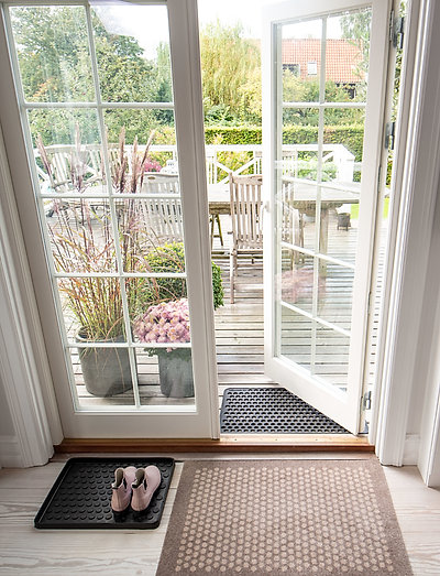 Do you want a smart, elegant yet practical hallway? these foot mats make a good choice. the mats are available in unicolor and different color combinations and three graphic patterns that fit our range of boot trays and door mats. the dense filth in 100 % polyamide is soft and durable and absorbs moisture and dirt. the back is made of rubber, to make the mat stable on the floor and avoid sliding. the mats are very durable and easy to clean.