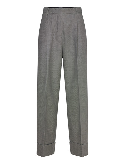 These trousers offer a sophisticated silhouette with their wide-leg design. Featuring a tailored waistband and cuffed hems, they provide a polished and contemporary look.