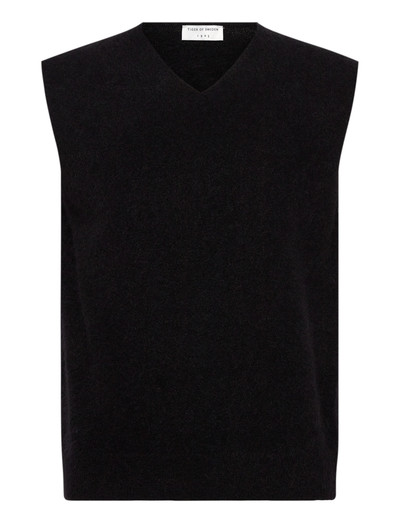 The Henry is a regular-fit V-neck vest is crafted from a soft Responsible Mohair Standard-Certified blend in a mid-gauge knit. The body is worked in a classic jersey stitch, complemented by a rib-stitched bottom hem for subtle structure. The sleeveless design features a clean self-start edge at the neckline and armholes, highlighted with fully fashioned details for a refined finish. A French shoulder with fashioned marks adds a tailored touch, while the hip-length cut ensures a versatile and flattering silhouette.