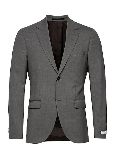 Structured shoulders and a tailored fit define this single-breasted blazer. A versatile piece, it features a two-button closure and flap pockets.