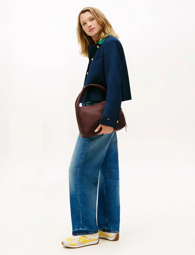 Crafted with a softly structured silhouette, this shoulder bag offers a refined accent to any ensemble. It features a secure zip-top closure and a comfortable, easy-to-carry handle.