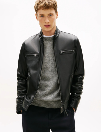Crafted from supple leather, this jacket features a streamlined silhouette and multiple zip pockets for a touch of utility. A versatile piece that adds an edge to any outfit.