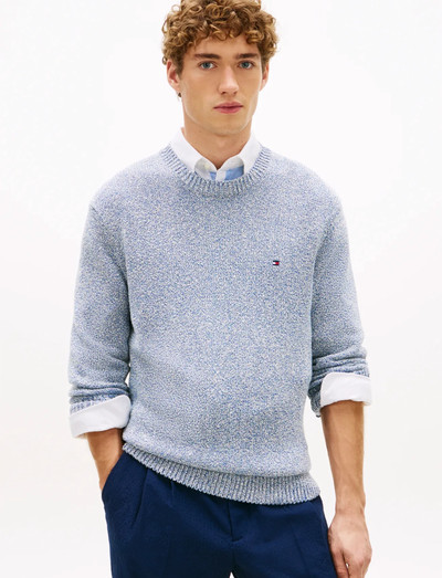 Refresh your knitwear collection with this relaxed-fit jumper, crafted from two-tone pure cotton in a bouclé knit for a softened silhouette.Highlights Pure cotton Bouclé finish Crew neck Rib-knit collar, cuffs and hem Tommy Hilfiger branding Tommy Hilfiger flag embroidery on chestShape & fit Relaxed fit Dropped shouldersComposition & care 100% cotton
