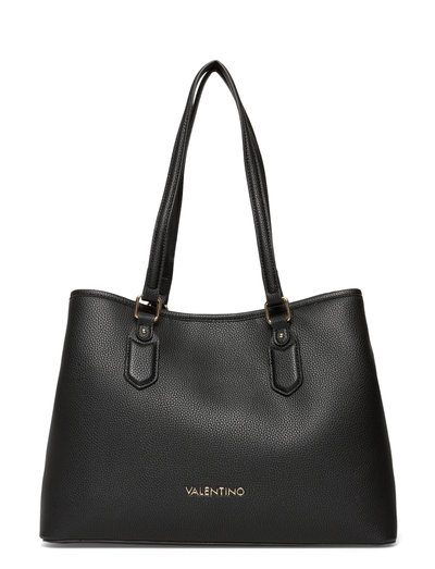 The Brixton tote from Valentino Bags is beautifully made from high-quality PU leather, showcasing a minimalist yet timeless design. Its top handles allow for comfortable wear over the shoulder or a secure grip in hand. A pressure closure keeps both sides together, revealing an interior that features a zipped compartment in the center along with two open sections. The zipped side compartment is perfect for smaller items, while the central zipped compartment helps to keep your belongings organized. The bag is elegantly finished off with a gold-toned hardware logo on the lower front.