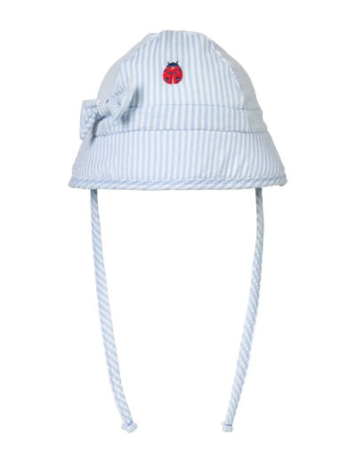 The stylish Blue sun bucket hat with cute bow is the perfect blend of practicality and charm for sunny days. Made from lightweight and breathable seersucker fabric, it offers a classic look and a comfortable fit for your child.
