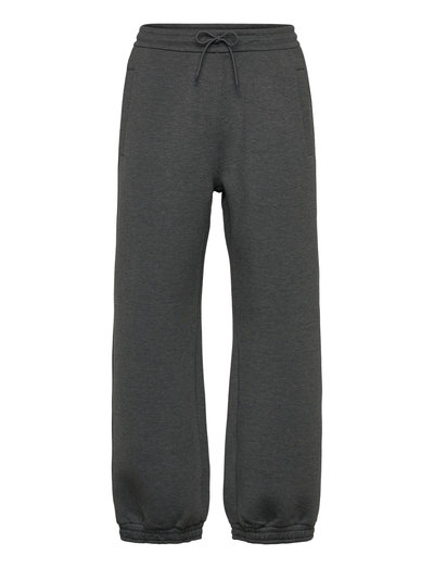 A pair of sweatpants crafted from a chunky scuba fabric with a recycled polyester and viscose blend, enhanced with a touch of recycled elastane. They feature an elasticated drawstring waistband, has side welt pockets, a patch-on back pocket, and elasticated hems.
