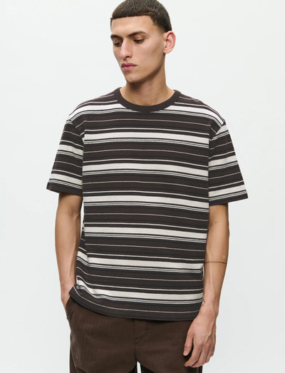 Crafted with a classic crew neck, this striped tee offers a relaxed fit for everyday comfort. The horizontal stripes add a touch of visual interest, making it a versatile addition to any wardrobe.