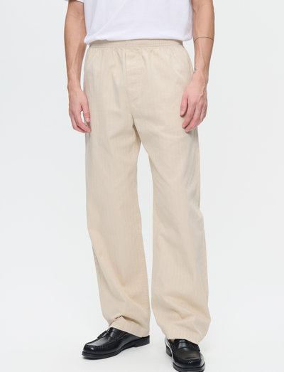 These trousers are a stylish and comfortable option for any occasion. They feature a herringbone pattern and a relaxed fit, making them perfect for everyday wear. The trousers are made from high-quality materials and are designed to last.