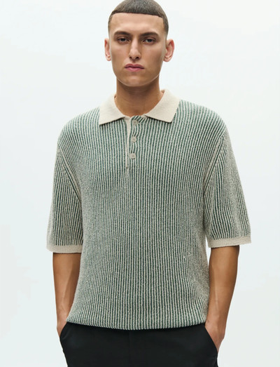 Vertical stripes lend subtle texture to this short-sleeved knit polo. The refined design features a classic polo collar and a buttoned placket.
