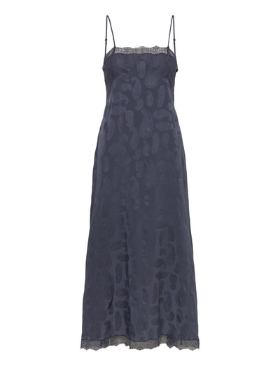 Elegant and refined, this midi dress features delicate lace trim at the neckline and hem. The subtle paisley pattern adds a touch of sophistication to this classic silhouette. Perfect for a special occasion or a night out.