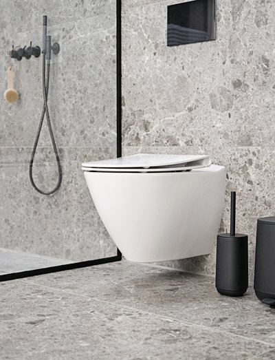 The TIME bathroom range definitely invites a second glance. Zone Denmark has brought a whole new material into play. Three of the four products in the range – the soap dispenser, toothbrush tumbler and toilet brush – are made of concrete with just a few plastic details added. The pedal bin, on the other hand, is pure ABS plastic, but colour-matches the concrete products, giving the range a consistently powerful look and feel.