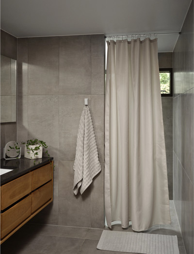 Deluxe jacquard weave shower curtain in a classic design with timeless textured pattern. Extra strong quality with a weighted hem at the bottom. Machine washable at 40 °C. 180 x 200 cm.