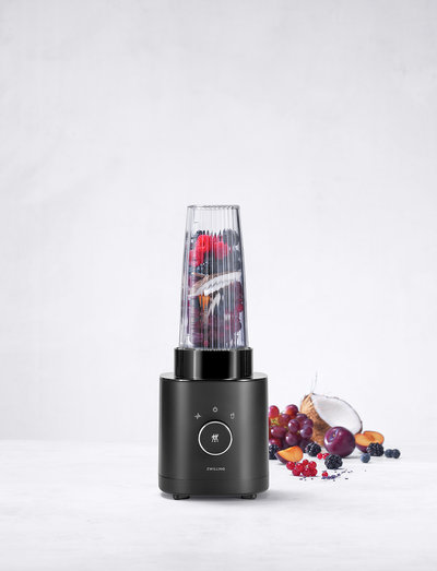 This small ENFINIGY series Personal Blender in black is more than just a smoothie-maker. Featuring an authentic ZWILLING cross blade newly developed and manufactured in Solingen, the high-quality blender offers the finest blending results. Even nuts and ice cubes are effortlessly blended by the stainless steel blade with special serration and piranha teeth. The practical to-go drinking bottle made with BPA-free Tritan allows you to simply take blended drinks with you on the go. The operating knob lets you intuitively choose between both a smoothie and a pulse programme. The latter is suitable for short, manual blending and for additional blending for even finer results. The powerful 600 watt motor of this high-performance blender has been perfectly calibrated to the blade and jug for excellent blending every time. The 550 ml blender jug is made with BPA-free Tritan and is both breakproof and dishwasher-safe. Hand cleaning is recommended. The outside surface of the mini blender is also easy to clean thanks to the modern one-button design with built-in display. The built-in safety feature prevents the Personal Blender from operating without the jug, thereby avoiding any risk of injury.