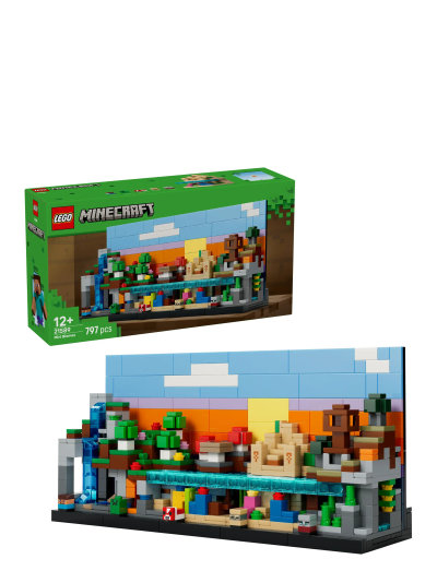 LEGO Minecraft setissä on 5 irrotettavaa biomia: vuori, jossa on tippukiviluola, ametistigeodi ja vesiputous, kukkametsä, jossa on luola, laavaa ja kultaa, sienikenttä, jossa on koralliriutta, laivanhylky, 2 punaista sienipuuta ja ruskea sieni, aavikko, jossa on temppeli, koralliriutta, meri, kaktuksia ja aarrearkku sekä savanni, jossa on pillagerien vartioasema, rehevä luola, akaasiapuita, kurpitsa, laavaa ja ranta. Setti sisältää myös käännettävän taustan (päivä/yö). Pienoismalli on mainio lahjaidea Minecraft-pelaajille ja LEGO rakentelijoille. LEGO Builder sovellus selkeine digitaalisine ohjeineen antaa lapsille itsevarmuutta rakentamiseen. Sovelluksessa he voivat zoomata ja kiertää malleja 3D-näkymässä sekä seurata edistymistään. Setissä on 797 osaa.