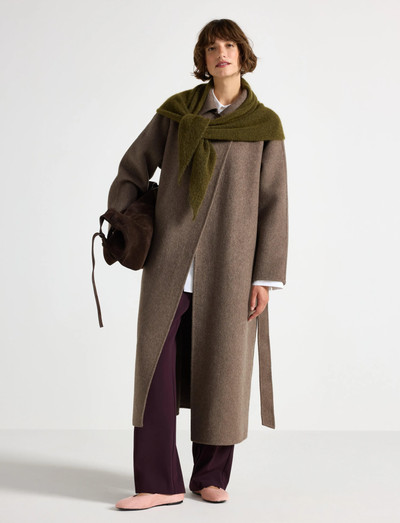 Crafted from a soft wool blend, this coat features a tie belt at the waist for a flattering silhouette. It also includes practical front pockets and an unlined design, making it a versatile layering piece.