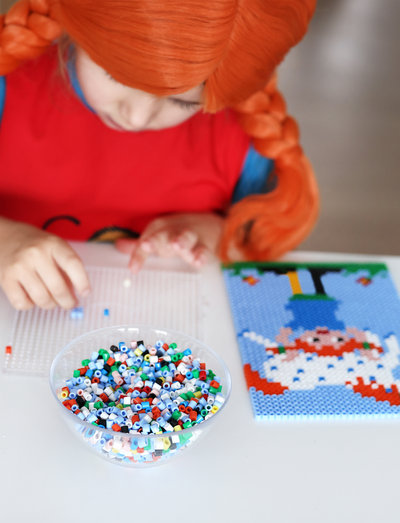 Tee Peppi-aiheisia helmitöitä! Luo upea helmityö Pepistä kannattelemassa Pikku-Ukkoa päänsä päällä helmiä asettelemalla. Setti sisältää 2 000 helmeä, 2 suurta helmilevyä ja värillisiä kuviokortteja. Pakettiin sisältyy myös silityspaperi ja ohjeet helmiplatan silittämiseen.