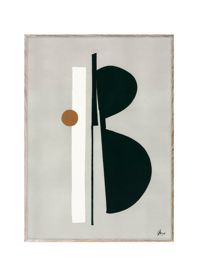 A simple composition brings together straight lines and flowing forms, creating Balance 02 by the Dutch artist Mae Studio. Centered within the artwork, stretched angular forms in white and black are punctuated by a single circle in deep yellow, while two rounded forms in black create a graphic centerpiece. The result is a series of disconnecting forms combined in a harmonious embrace. Mae Studio for Paper Collective. A graphic art print / poster manufactured in Denmark from environmentally certified materials and production.FSC certified, 200g uncoated acid-free paper, Swan certification system.