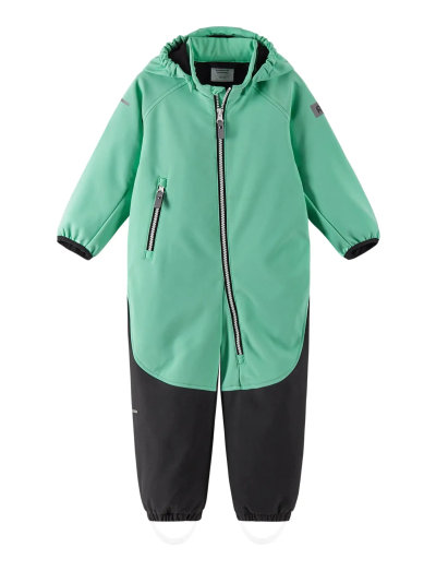 Let little ones nap outdoors comfortably in this softshell jumpsuit. Windproof, breathable and water-repellent, this one-piece design features a safe hood that detaches if caught. A full-length zipper with chin guard makes it easy to pull on, while reinforced bottoms ensure wear. Meeting strict safety standards, it's crafted from fabrics and accessories, minimizing impact on people.
