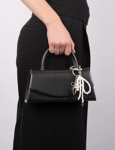 A sleek, structured silhouette defines this handbag, making it a versatile addition to any wardrobe. The overlapping closure adds a touch of modern sophistication, while the top handle allows for easy carrying.