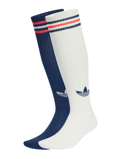Nämä polvisukat tuovat sporttisen tunnelman asuun kuin asuun. Niissä on ikoniset 3-raidat ja Trefoil-logo, jotka viittaavat klassiseen urheilutyyliin. Käytä niitä shortsien kanssa, jotta ne pääsevät oikeuksiinsa, tai anna niiden pilkistää farkkujen alta hienovaraisena yksityiskohtana. Jokainen pakkaus sisältää kaksi paria.