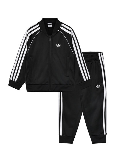 Sporttinen ilme on helppo saavuttaa tällä mukavalla verryttelypuvulla. Takissa ja housuissa on ikoniset kolme raitaa, ja tämä setti tarjoaa klassisen urheilullisen tyylin. Täyspitkä vetoketju tekee takin pukemisesta ja riisumisesta helppoa, kun taas resorihihansuut ja helma takaavat tiukan istuvuuden.