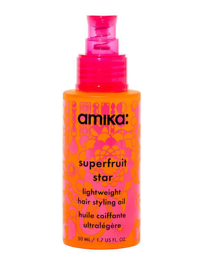 Superfruit Star Lightweight Hair Styling Oil on monipuolinen ja kevyt öljy, joka sopii sekä hienoille että paksuille hiuksille. Öljy vähentää hiusten katkeilua, silottaa pörröisyyttä, antaa kiiltävän lopputuloksen ja suojaa lämmön aiheuttamilta vaurioilta jopa 232°C asti. Kliinisesti todistettu tekemään hiuksista 7 kertaa vahvemmat, 2 kertaa pehmeämmät ja vähentämään hiusten katkeilua 86 %. Sisältää tyrniä, joka ravitsee ja palauttaa hiusten lipidit lisäten kiiltoa, hallittavuutta, pehmeyttä ja voimaa. Muodostaa suojaavan kerroksen hiusten pinnalle ja suojaa katkeilulta, lämmöltä ja pörröisyydeltä, jättäen silkkisen lopputuloksen. Sisältää ei-syklisiä silikoneja, jotka lisäävät kiiltoa ja hoitavuutta sekä vähentävät kulumista ja suojaavat lämmön aiheuttamilta vaurioilta. Vegaaninen ja vapaa sulfaatteista, parabeeneista ja mineraaliöljyistä.