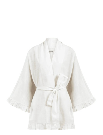 Tämä kimono on valmistettu 100 % luomupuuvillasta ja se tuo ripauksen eleganssia oleskeluasukokoelmaasi. Sen takana on hienoja brodeerattuja joutsenia, jotka muodostavat ainutlaatuisen sydämen. Täydellinen lisäämään mukavuutta ja tyyliä rentoutumishetkiisi.