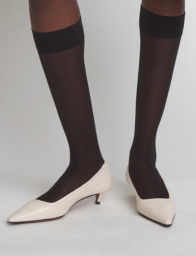 Terävä kitten-korko luo kontrastia tämän elegantin avokkaan pehmeälle, rypytetylle yläosalle luoden modernin siluetin. Hienostunut mutta arkkitehtoninen kenkä tarjoaa tyylikkään ja vaivattoman tyylin.