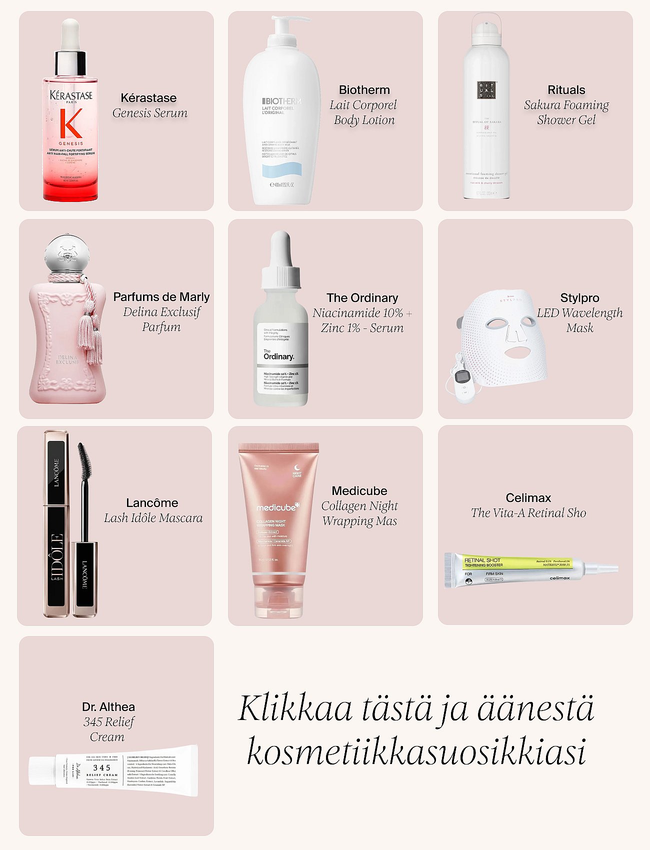 Palkitut ja nimetyt tuotteet, joiden erinomaisuus on tunnustettu kosmetiikka-alalla.
