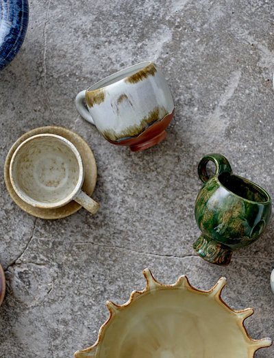 The Jade Cup by Bloomingville is made of stoneware with a reactive glaze in earthy tones and a warm terracotta-coloured base. The flowing glaze gives the mug a lively and organic look, while slight variations in colour and surface make each piece unique. Set of 4.