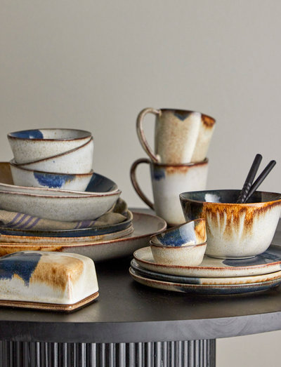 Bloomingvillen Jules-lautas on upea käsityönä valmistettu kivitavaran pala, jossa on ainutlaatuinen monivärinen lasite. Korosta pöytääsi paahdettujen curryn sävyjen ja syvän valtameren sinisen taiteellisella yhdistelmällä. Tämä lautanen yhdistää saumattomasti kauneuden ja käytännöllisyyden, sillä se on sekä astianpesukone- että mikroaaltouuninkestävä. Pakkaus 4 kpl. D22xH2 cm.
