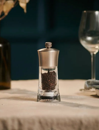 Saltmill made of acrylic and stainless steel with grinding mechanism that can easilya be adjusted from fine to coarse by turning the knob at the top of the mill. The sharp, corrosion-resistant ceramic grinder for salt comes witha lifetime guarantee.