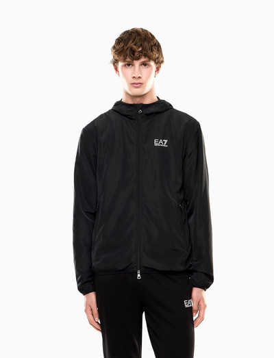 Tämä EA7-bombertakki on tyylikäs ja käytännöllinen valinta mihin tahansa tilaisuuteen. Siinä on klassinen bomber-malli vetoketjulla ja hupulla. Takki on valmistettu kevyestä ja hengittävästä materiaalista, joten se sopii täydellisesti kerrospukeutumiseen viileämmällä säällä. EA7-logo on näkyvästi rinnassa, mikä lisää urheilullista tyyliä.