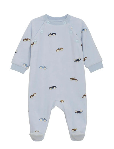 Romper made of velour from FIXONI. This romper has all-over-print. The Romper has all-over-print. Can be opened in the back. Certified acc. to GOTS - organic CERES-0366
