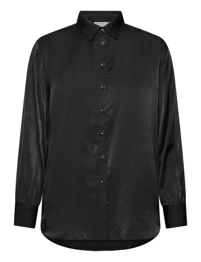 Sileästä, kiiltävästä materiaalista valmistettu pitkähihainen paita tuo tyylikkään lisän asukokonaisuuteen. Klassinen napitus ja rento istuvuus tekevät siitä monipuolisen valinnan niin arkeen kuin juhlaankin.