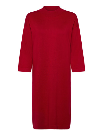 Pehmeästä, hienoneulotusta materiaalista valmistettu mekko on mukava ja tyylikäs valinta. Siinä on korkea pääntie ja kolmevarttiset hihat, joissa on laskettu olkalinja, mikä korostaa sen rentoa istuvuutta ja kaunista A-linjaista muotoa.