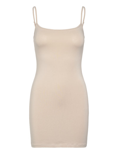 Tämä mini-liivimekko on vaatekaapin perusvaate. Siinä on yksinkertainen, virtaviivainen muotoilu. Mekossa on ohuet olkaimet ja suora pääntie. Se sopii täydellisesti kerrospukeutumiseen tai käytettäväksi yksinään.