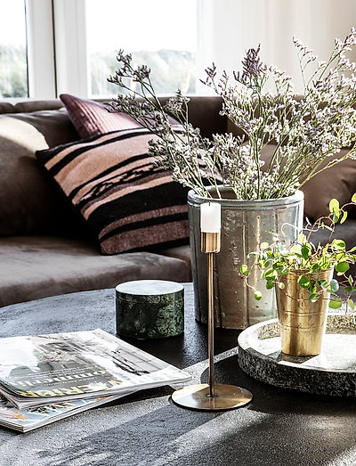 Candles bring a cosy and warm atmosphere to the room. With the Anit candle holder from House Doctor, you get a beautiful, iron candle stand for tea lights or candles. The candle stands antique brass colour combined with its iron structure gives it a unique and raw look. The design is simple with round shapes. Use it as a table decoration for when you have guests over, or use it as part of a cluster with other candle stands in different materials for a personal look. Suitable for candles measuring 2 cm in dia. (201210005).