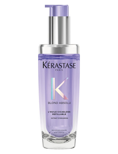 Kérastasen Blond Absolu Cicagloss-hiusöljy on täydellisesti vaalennetulle ja luonnostaan vaalealle hiukselle suunniteltu öljy, jota voi täyttää uudelleen. Tämä tehokkaasti hoitava öljy: