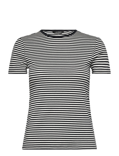 Tämä raidallinen t-paita tarjoaa mukavan istuvuuden ja ripauksen joustoa, mikä tekee siitä monipuolisen lisän jokaiseen vaatekaappiin. Klassinen pyöreä pääntie tekee siitä täydellisen kerrospukeutumiseen tai sellaisenaan käytettäväksi.