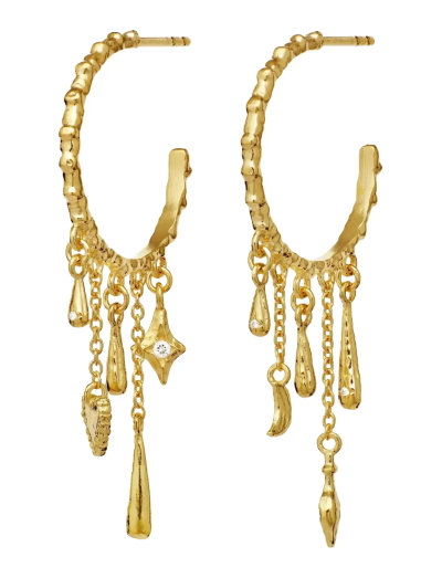 Näissä korvarenkaissa on leikkisä tunnelma pienten koristeiden ansiosta. Teksturoiduista renkaista roikkuu pieniä kyyneliä, kuita, sydämiä ja tähtiä, jotka tuovat mieleen ajattoman romantiikan.